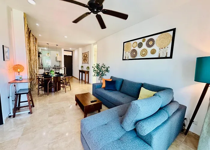 For those who prefer to cook, Stylish Central 2Br 2Ba Rooftop Pool & Sea Views apartment provides an equipped kitchen for preparing homemade meals. Aeropuerto de Playa del Carmen airport is at a 5-minute driving distance, and Colectivo pick up bus stop is only a 5-minute stroll from the property.